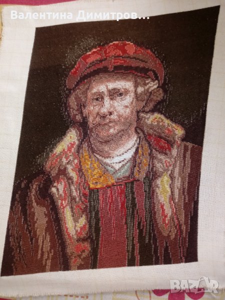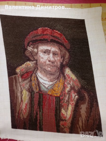 Продавам Оригинален Вилеров гоблен : Автопортрет на Рембранд ( Автопортрет с червена шапка ) . Шит 2022 г. Бод: 1:4 фон и 1:1 лице