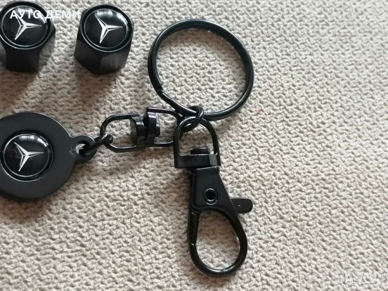 Цена за 1 комплект черни капачки за вентили с ключодържател с емблеми на Мерцедес бенц или друга марка автомобил - 14.80 лв .