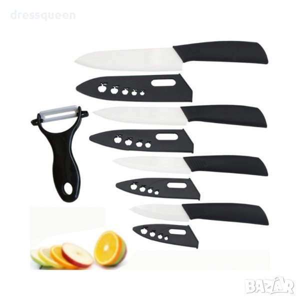 Домакински комплект от 4 бр. керамични ножа и белачка за зеленчуци