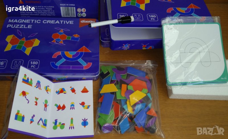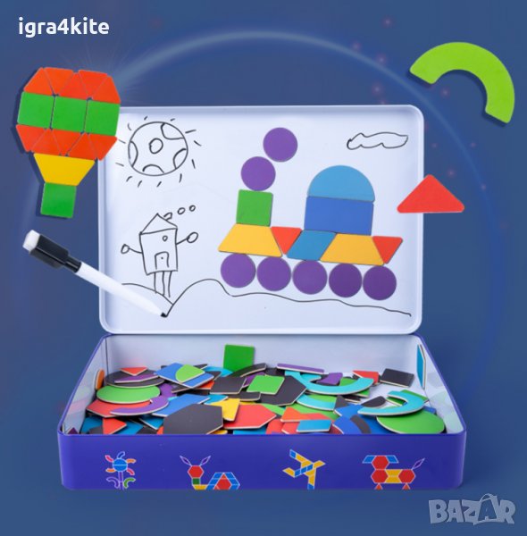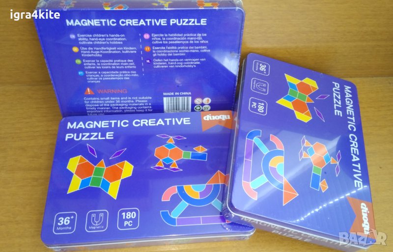 ХИТ! Дървена магнитни елементи мозайка в метална кутия 180 бр. НОВО