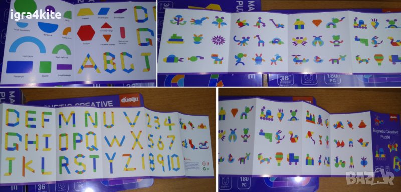 -180 бр. дървени магнитни елементи в 18 различни форми.