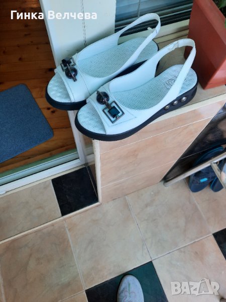 Бели сандали на платформа , много елегантни, модел от 2024г. , естествена кожа отвън и отвътре .