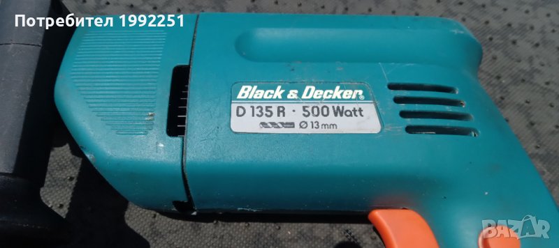 Ударна бормашина / дрелка НОМЕР 62. Black&Decker D135D. 500W. 1950 обор/мин. Max Ф13мм. Посока ляво и дясно. Въртене и въртене с удар. Внос от Германия. Работещ.