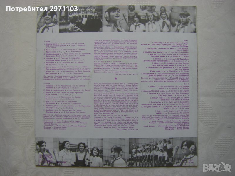Грамофонна плоча - ВЕА 1939 - Песничка за теб: любими детски песни и стихове 2. Изпълнява вокална група "Сребърни звънчета" - гр. Кюстендил