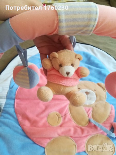 Продавам активна гимнастика за бебе. С три играчки, които могат да се махат. Има две звездички. Едната е като дрънкалка, другата има свирка. Ушите на мечето шумолят. Изключително компактна и удобна за път.