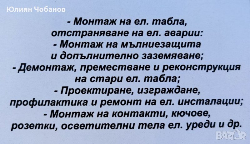 Електротехник / Електроуслуги (за град София) → Обява 37252152