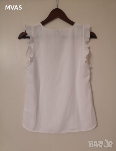 Нова лятна блузка топ на H&M, бяла с малки волани на раменете, V-образно деколте, ефирен, но не прекалено тънък плат (полиестер)