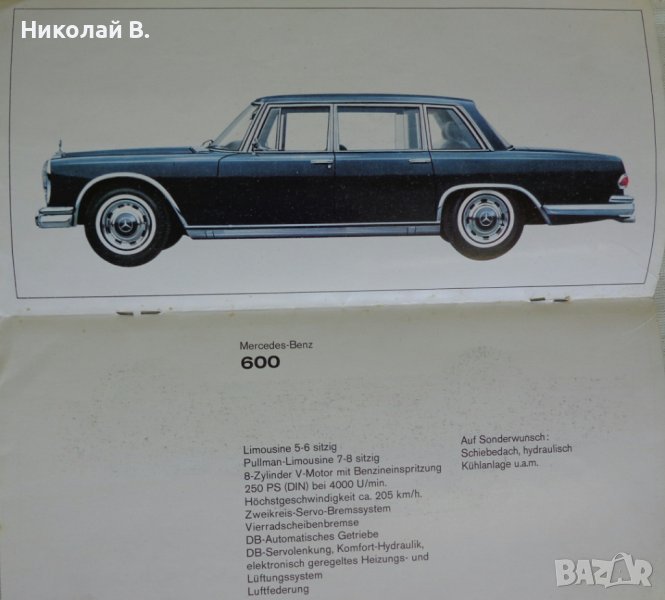 Ретро Рекламен проспект на автомобил Мерцедес Бенц Personen Wagen 08.66 год. → Обява 37255832