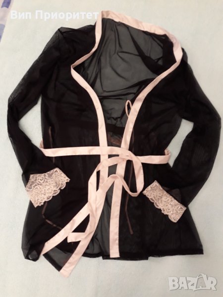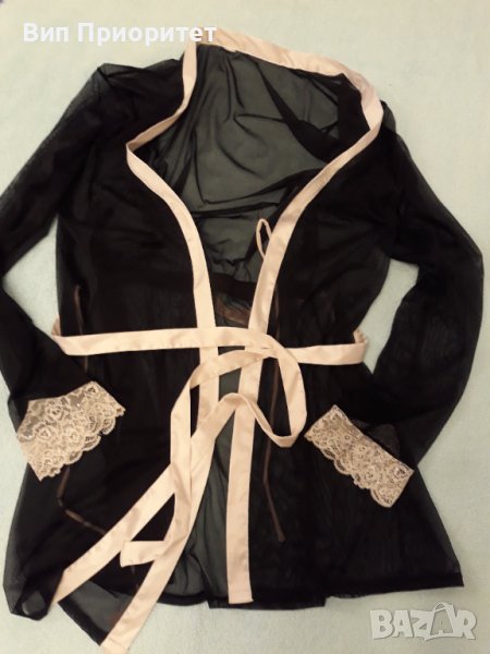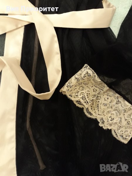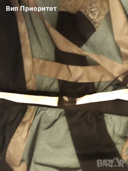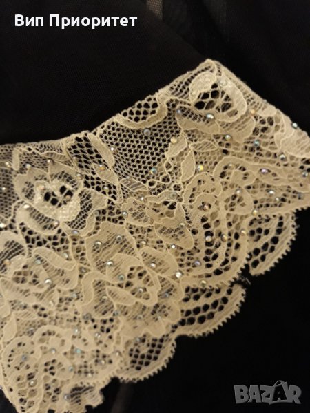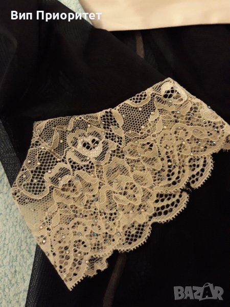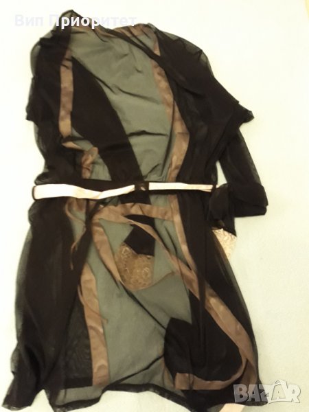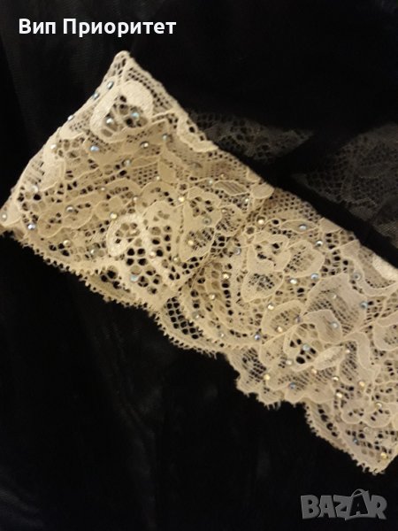 Прозрачна горница в черно и екрю-коприна + екрю орнаменти за свежест и коланче в талията, фиерична, чисто нова с етикета, дълъг ръкав, фина, сексапилна.