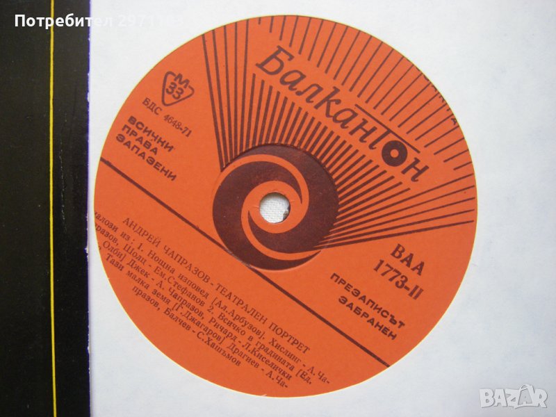 Грамофонна плоча - ВАА 1773 - Андрей Чапразов.Театрален портрет