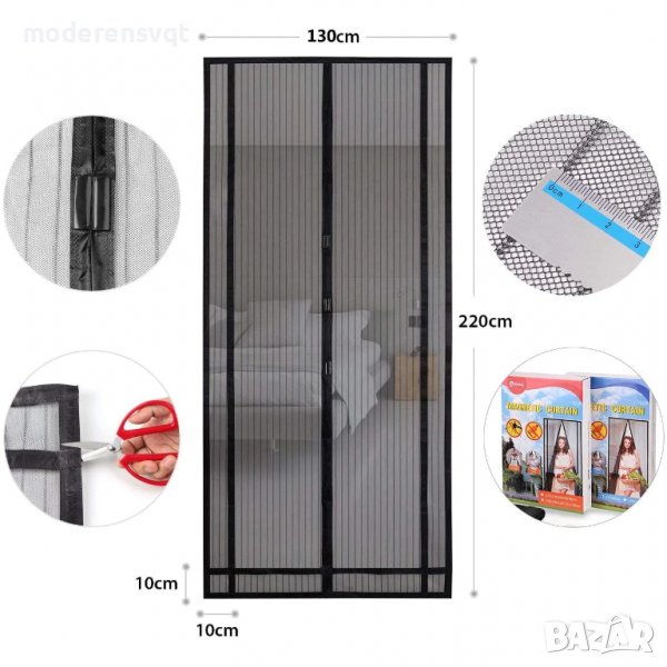 магнитна мрежа с отвор в средата, през който Вие, децата или домашните любимци могат да преминават свободно. Магнитните щипки ще подсигурят сигурното затваряне на отвора след отваряне. Така плътната мрежа блокира проникване на насекоми след Вас. Единствено чистия въздух намира ще има достъп до Вашия дом.