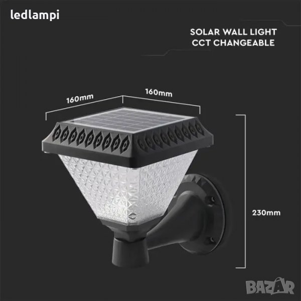 LED Соларен Градински Аплик RF Дистанционно CCT3в1