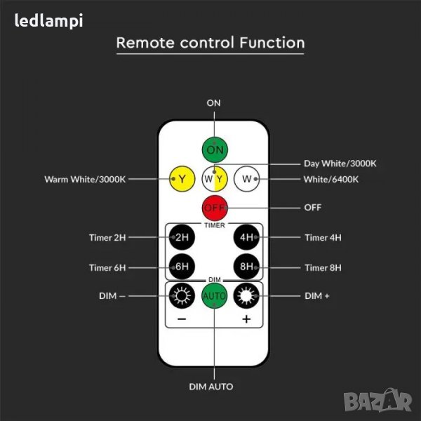 Смяна на цветовете с дистанционно 3000K/4000K/6400K