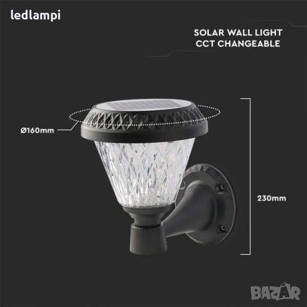 LED Соларен Градински Аплик RF Дистанционно CCT3в1