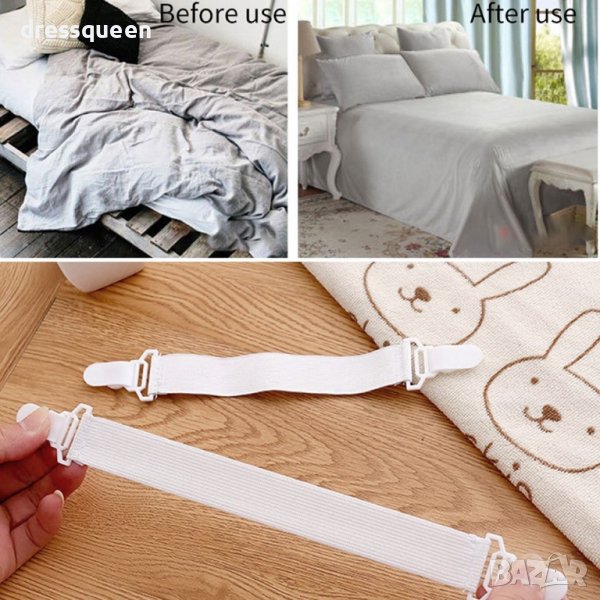 Щипките са подходящи за изпъване на чаршафи и калъфи за маса за гладене. Захващат се за всяка страна на всеки ъгъл на чаршаф за легло, покривало или протектор за легло, одеало, подложки за матрак, покривки, калъф за диван или за маса за гладене.