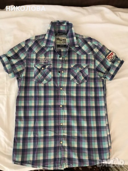 Продавам запазени мъжки къс панталон на TOM TAILOR 100% памук, размер 31 с бонус памучна риза с къс ръкав на SCOTCH размер М