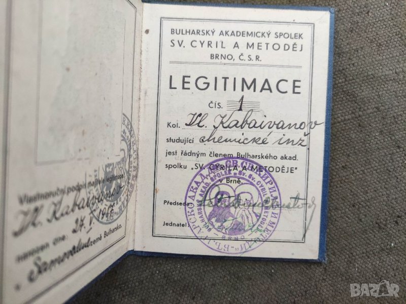 Продавам Легитимация Българско акад. дружество Бърно 1939 → Обява 37266298