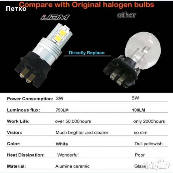 Около 12VX0.27A = 3.2W мощност на светодиодите: 1.5w работно напрежение: 12V-24V D работна температура: -40 ° C- 105 ° C