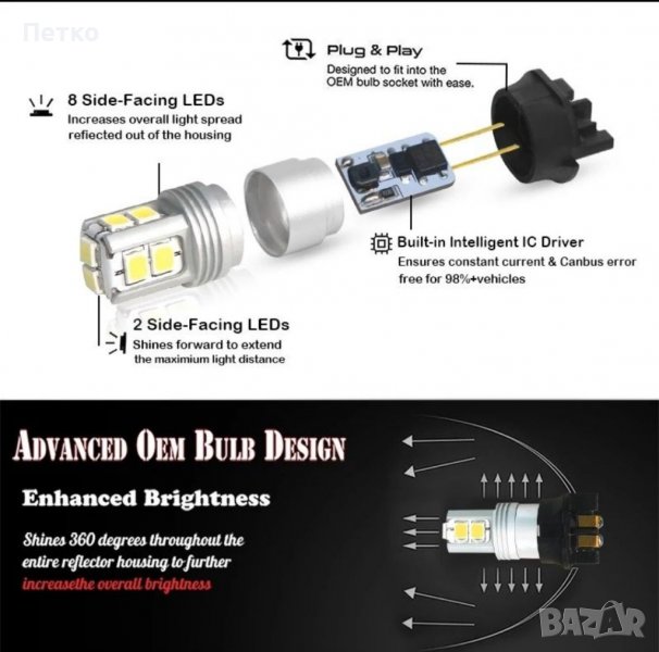 Захранва се от 10 чипа супер ярка 3030 висока мощност LED светлини (6000K HID съвпадащ ксенон бял цвят) CANBUS