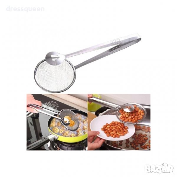 Метална щипка с лъжица и цедка, за пържени картофи и всякакви пържени неща