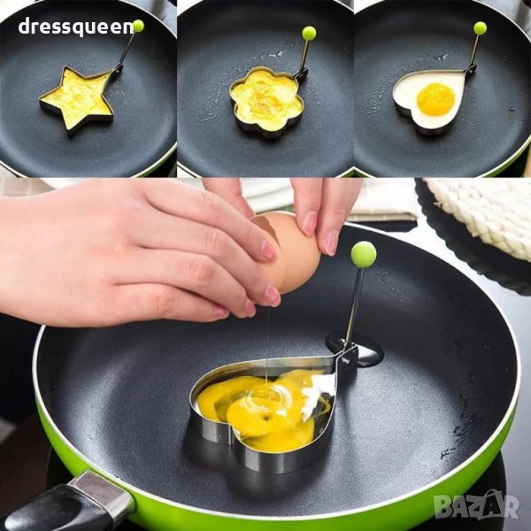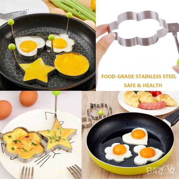 Метална формичка за приготяне на пържени яйца,омлет и забавни сандвичи. Приготви пържени яйца в интересна форма на сърце, звезда или цвете.