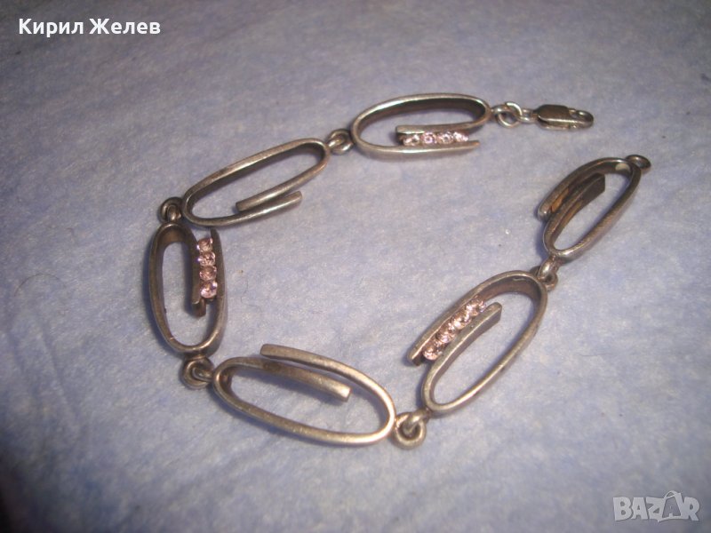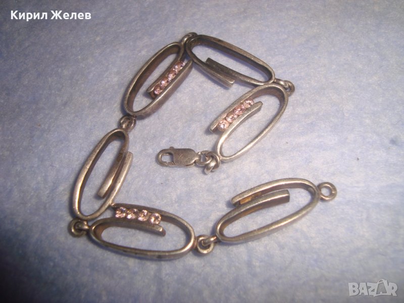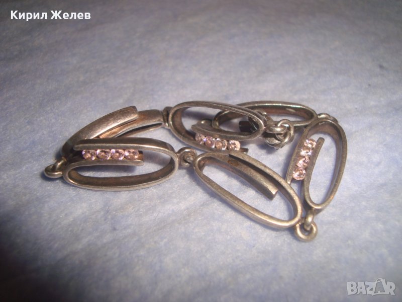 СРЕБЪРНА СКЪПОЦЕННА АРТ ГРИВНА СРЕБРО 925 с ИНКРУСТИРАНИ ФАСЕТИРАНИ РОЗОВИ КАМЪЧЕТА КРИСТАЛ 28733