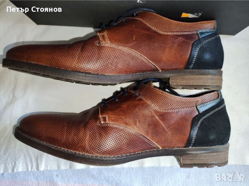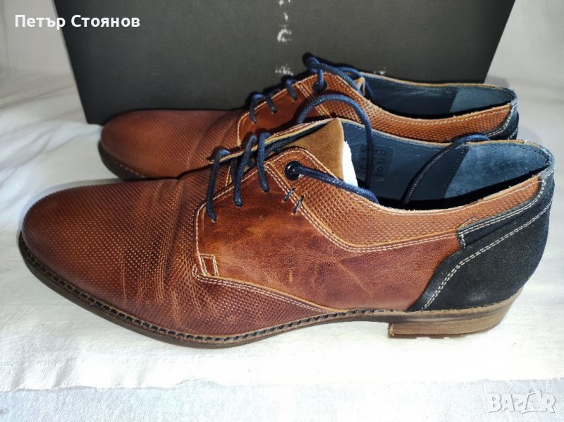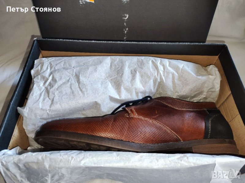 Предлагам чудесни мъжки обувки на реномираната марка Oliver Jacob. обувките са чисто нови, в кутия, купувани са на разпродажба за 65.99 евро. Произведени са в Португалия от кафява естествена кожа, в комбинация с черен естествен велур. Хастарът и стелката също са от естествена кожа, а подметката от полиуретан, шити и лепени са. Дължината на стелката е 28 см, височината на подметката при петата е 2.5 см. Изпращам с избран от купувача куриер с възможност да се тестват.
