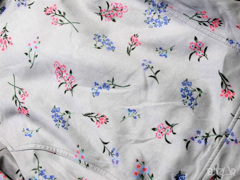Оригинално дамско яке, размер 2 ( между S и M ), цвят млечно сив с флорални елементи, байкър стил с широки ципове и асиметрично закопчаване с 3 външни джоба, НОВО, не е ползвано никога с дължина от рамо 53см, от рамо до рамо 38см, от подмишница до подмишница 47, дължина на ръкав от рамо 60см, талия едностранно 42см, най долу едностранно 49см от еластична материя наподобяваща естествен велур, но супер мека, хастар - полиестер.