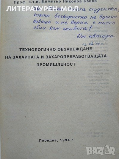 Технологично обзавеждане на захарната и захаропреработващата промишленост. Димитър Бабев 1994 г.