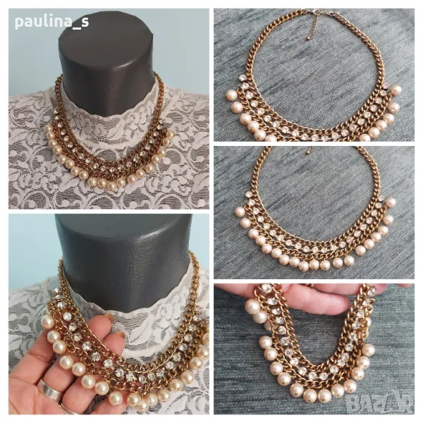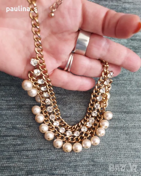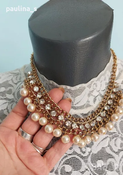 3. Колие тип чокър с камъни и перли, не е ново, съобразена крайна - 14,99лв.
