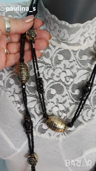 5. Колие тип гердан, с оксидирани и състарени рози, топки, черни мъниста и топки с бижутерска връв. Може да се носи в няколко пласта. Изцяло Ръчна изработка, нов! Цената е крайна 34,99лв.