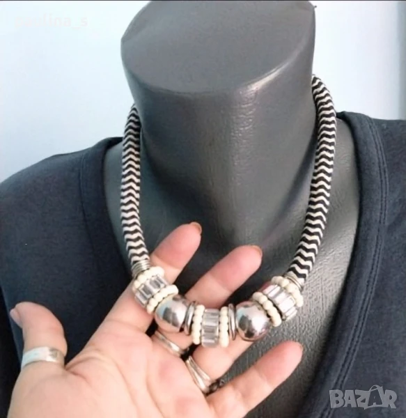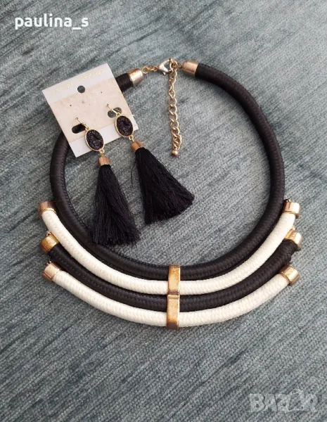 2. Колие с дебела текстилна връв в бяло и синьо, ново - 19,99лв