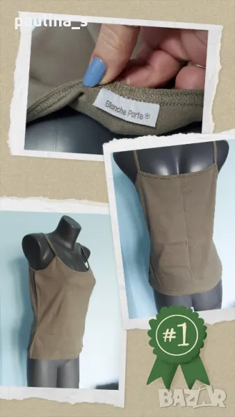 2. Колаж / XL / 3XL - "Blanche porte". Цената е крайна 9,99лв. Хипоалергичен зелен марков потник с голяма еластичност, покрива няколко размера, посочени са. Една бройка е, без дефекти и етикет, 100% органичен памук, изключително прецизна изработка. Не е нов, но е без дефекти.