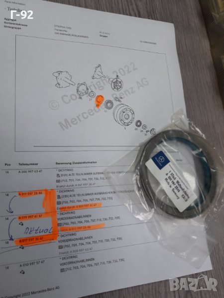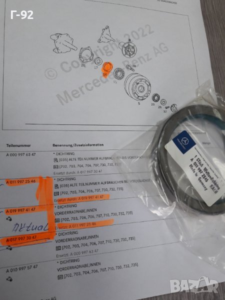 A0119972546=A0179973047**NEU**MERCEDES-BENZ**LKW**СЕМЕРИНА ЗА ЛАГЕРИТЕ НА ГЛАВИНАТА**