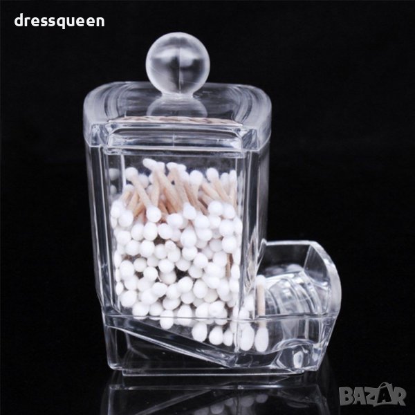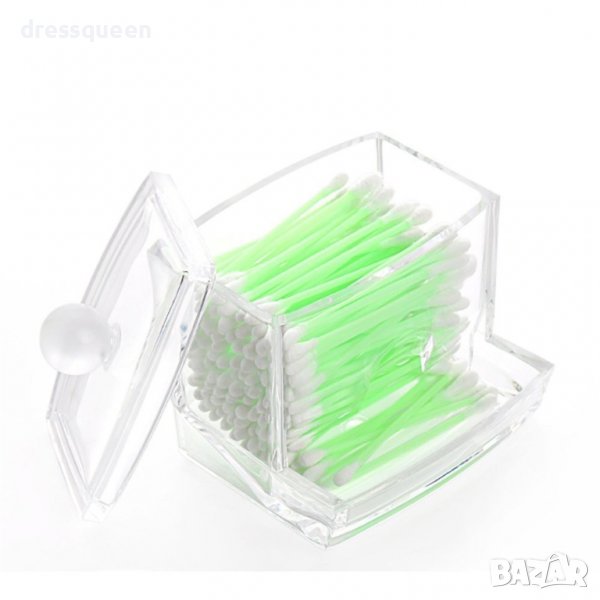 Практична поставка-диспенсър за клечки за уши. Специалният дизайн на поставката позволява винаги когато си вземете клечки за уши, на нейно място да застават нови. Нужно е само да я заредите, за да имате под ръка клечка винаги, когато ви потрябва. Без да ровите в кутията, без разпиляване - бързо и чисто. Поставката е идеална за банята, спалнята, тоалетката - изработена е от пластмаса, подходяща за храна и е напълно безопасна.