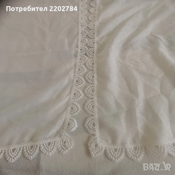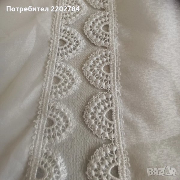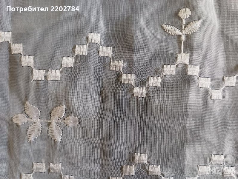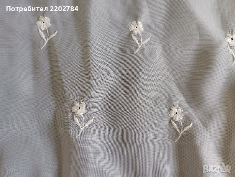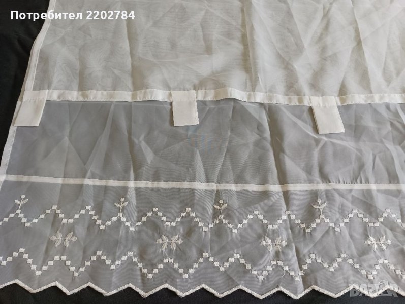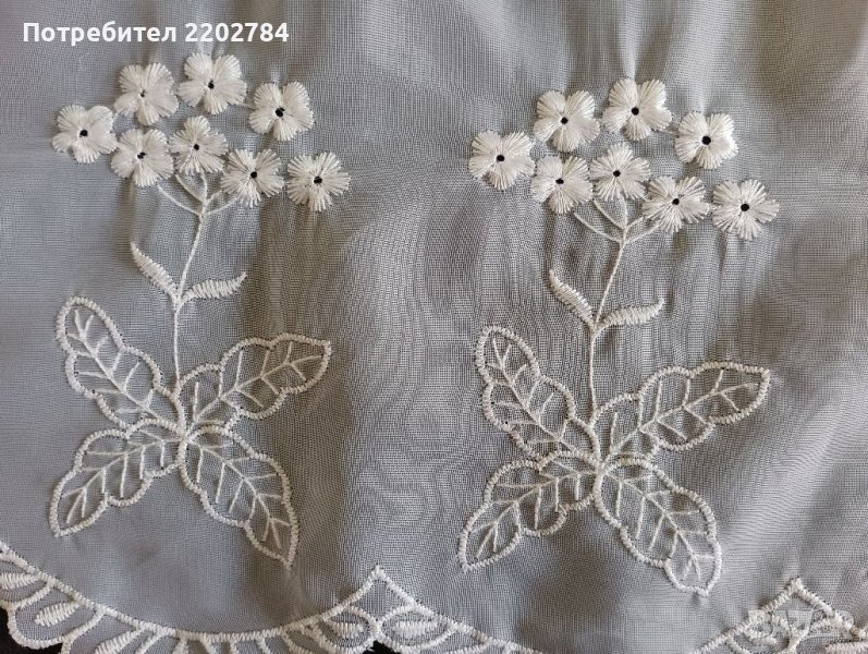 Второто е тънко,снежнобяло,прозрачно перде с красив и нежен бурдюр от бродерия.Ширина 140см,дължина 150см.