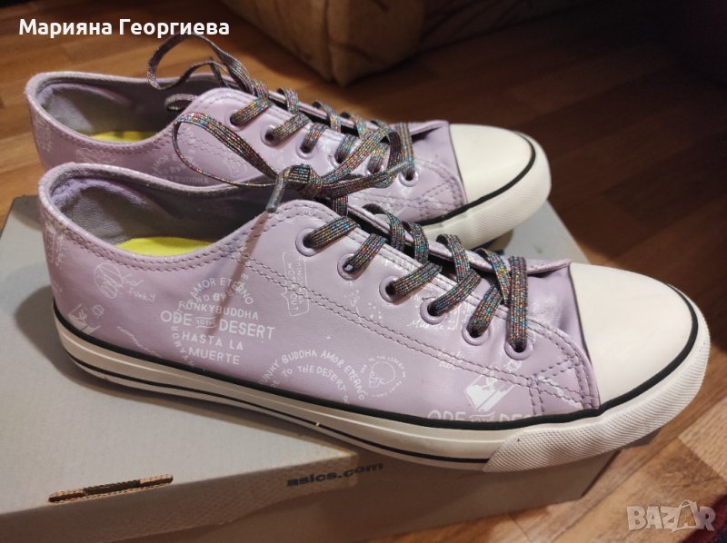 Кецове от еко кожа. С много мека и удобна подметка. С нормални следи от употреба. Цвят млечно лилаво.