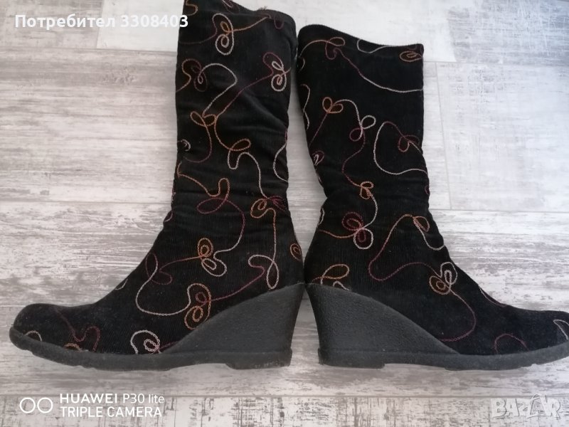 Дамски ботуши от плат на платформа. Носени са малко поради височината на подметката. Височина 7.5 см. Номер 40.