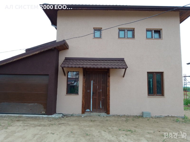 турбозол на първи и втори етаж, външна топлоизолация с мазилка, цокъл и веранда.