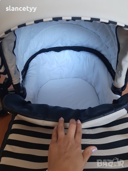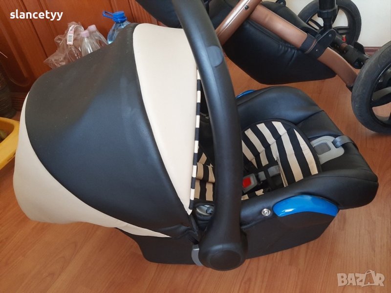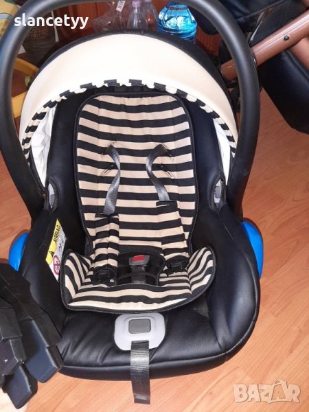 Комплектът включва: алуминиева рама, кош за новородено, летен кош с покривало за крачетата, стол за кола от група 0 (0-13 кг), стилна кожена чанта за принадлежности