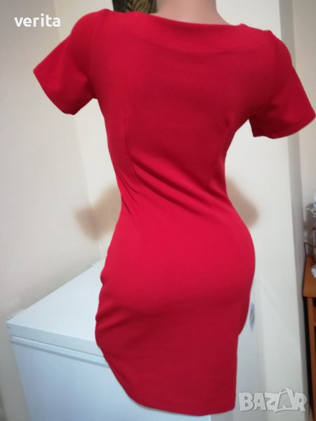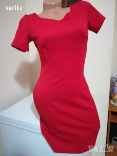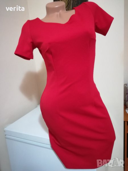Елегантна червена рокля с лека еластичност, размер S-M.