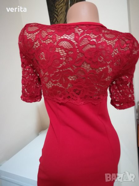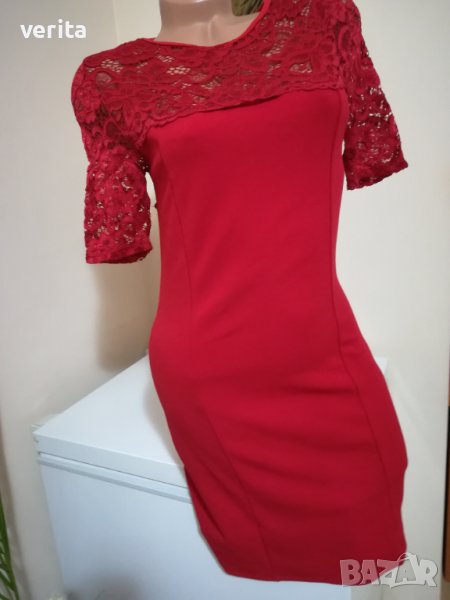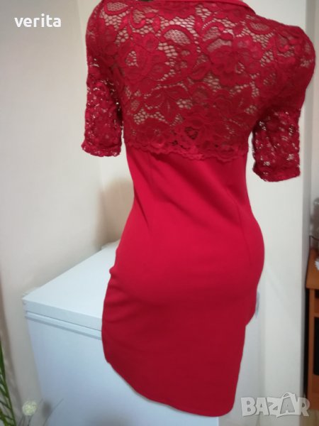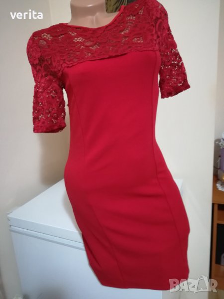 Червена рокля с дантела, има лека еластичност, размер S-M.