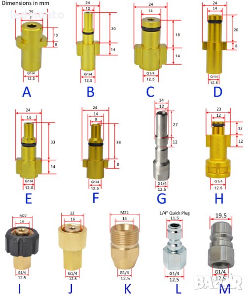B. накрайник, адаптер водоструйка AR Blue Clean / Black Decker (Русия и Европа) / Michelin / Повечето от Interskol / Greenworks Europe / Makita / По-голямата част от машината за налягане на Bosche;