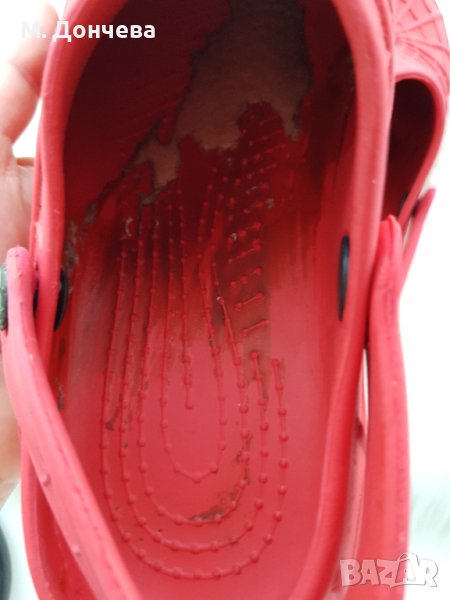 Забележка: от вътре имаха текстилна стелка, която беше залепена и след махането и, тъй като не бе удачен вариант за летни чехли останаха следи от лепило