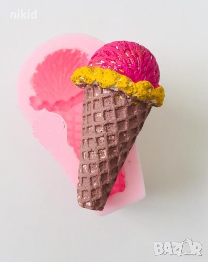 Топка сладолед във фунийка силиконов молд форма фондан гипс декор → Обява 37277547
