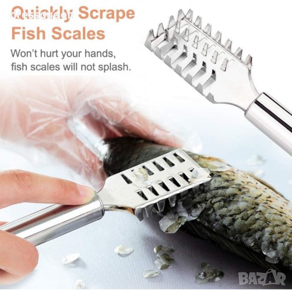 Отличен за отстраняване на рибни люспи. Изработка от висококачествена неръждаема стомана . Всеки детайл е завършен с изключително внимание с изключителен дизайн. Висококачествен безопасен за храна инструмент за премахване на люспи изработен от неръждаема стомана, неплъзгаща се дръжка е проектиран с ергономична здрава форма. Главата е полирана, така че не е лесно да се нарани кожата на рибата.