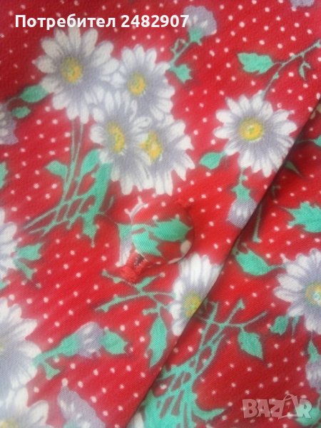 Копринена дамска риза с къс ръкав и свежи флорални мотиви. Ширина в раменете - 39 см, ширина под мишниците - 45 см, дължина от рамото до долу - 69 см, дължина на ръкава от рамото - 23 см. Нова, не е използвана, не се мачка.