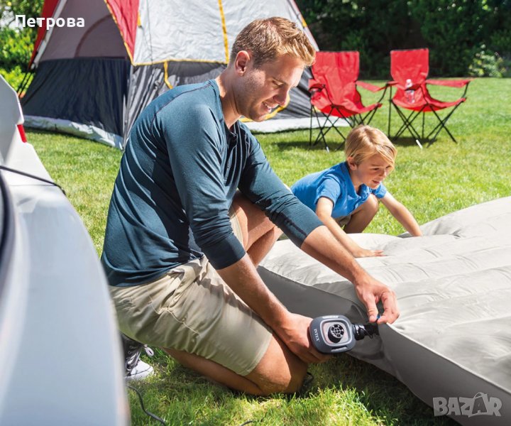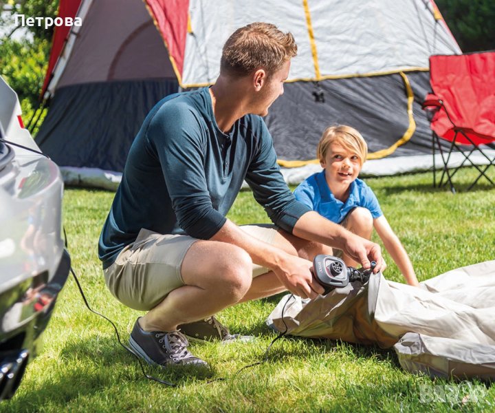 Електрическата помпа 12V INTEX Quick-Fill DC е идеална за използване на открито за напомпване на гумени лодки, басейни, детски надуваеми центрове, надуваеми играчки и дюшеци, матраци и легла, които нямат вградена надувна система. Просто свържете щепсела с 12-волтов постоянен ток към електрическия контакт на колата си и натиснете, за да надувате или изпускате. Предлага се с 3 дюзи, които правят помпата съвместима с много различни надувани продукти, а максималният въздушен поток от 650 л./мин. гарантира бързо изпълнение на работата. Освен това помпата има елегантен, аеродинамичен дизайн, който пасва перфектно на ръката ви.