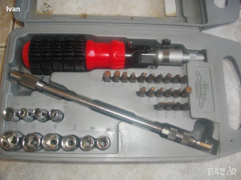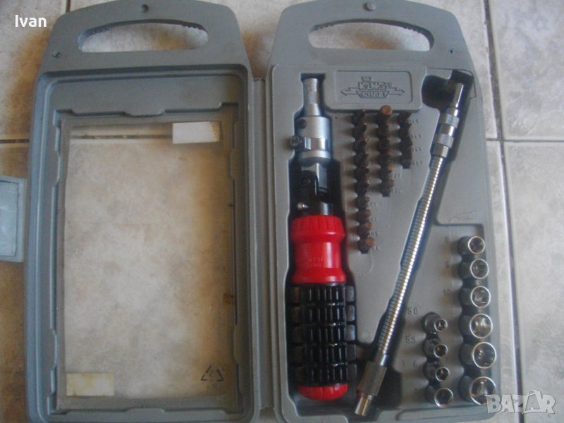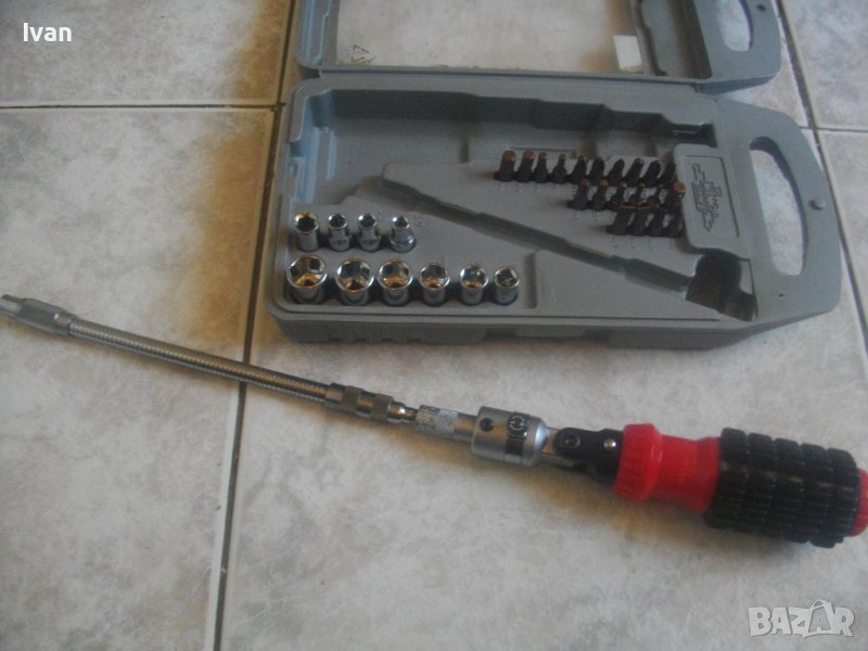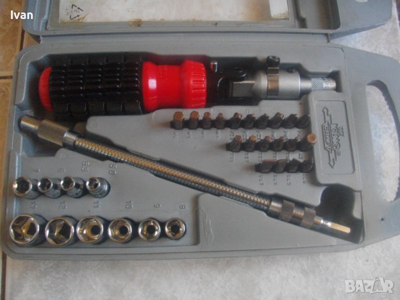 Съвсем нови комплекти немски оригинални ръчна реверсивна отвертка тресчотъчна с гъвкав вал удължително рамо и накрайници.