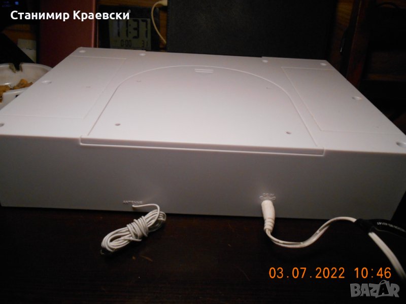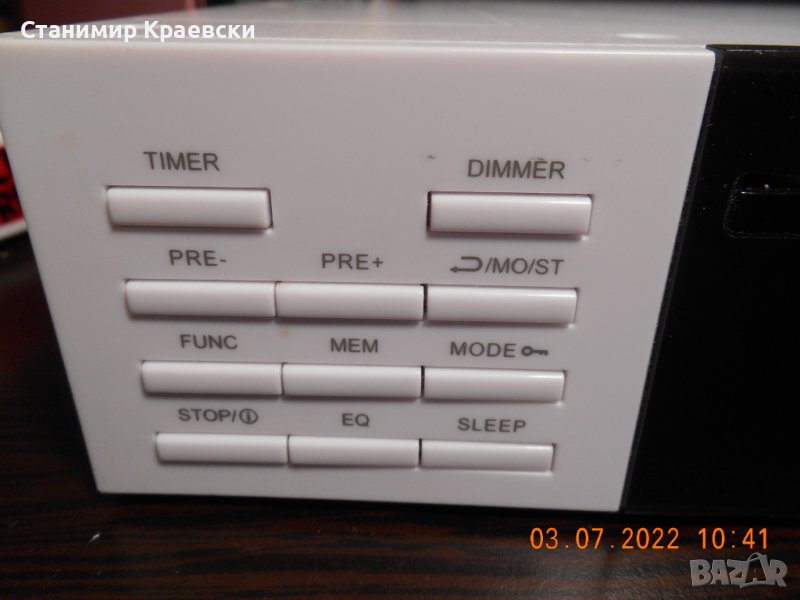 Радиочасовника работи без проблемно - диск - радио - вход Стерео говорители ляв и десен - странични PLL тунер с RDS Добра динамика и достатъчна мощост Стойка за монтаж под шкаф - Дистанционно няма